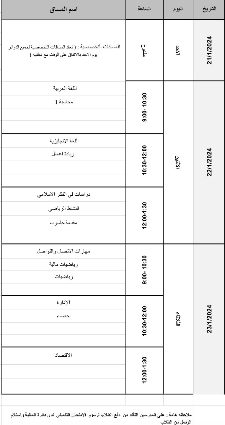 مرفق برنامج الامتحانات التكميليه