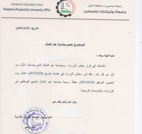 تعميم بمناسبه عيد العمال