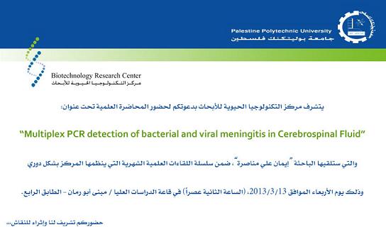 دعوة لمحاضرة علمية في مركز التكنولوجيا الحيوية