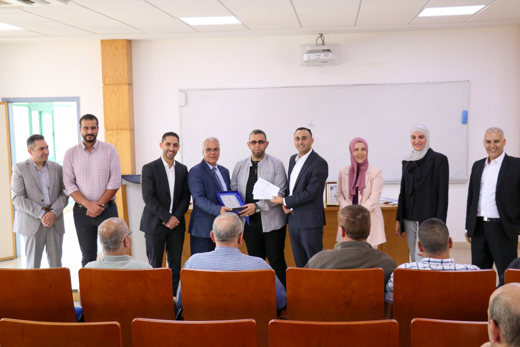 الخليل- 11-10-2022- إيماناً بأهميّة تثمين دور كوادر كلية المهن التطبيقية والإدارية، أقامت كلية المهن التطبيقية بجامعة بوليتكنك فلسطين حفلا لتكريم كوكبة من كوادرها الذين تميّزوا من خلال مبادراتهم ونشاطاتهم المُتميّزة في خدمة الجامعة والكلية خلال العام الأكاديمي 2021-2022. وتم الإحتفال برعاية رئيس جامعة بوليتكنك فلسطين الدكتور أمجد برهم، وحضور نائب رئيس الجامعة للشؤون الأكاديمية الدكتور رائد عمرو، ونائب رئيس الجامعة للشؤون الإدارية الدكتور زهدي سلهب، ونائب رئيس الجامعة لشؤون خدمة المجتمع الدكتور إسلام حسونة، وجمع من موظفي وكوادر كلية المهن التطبيقية.