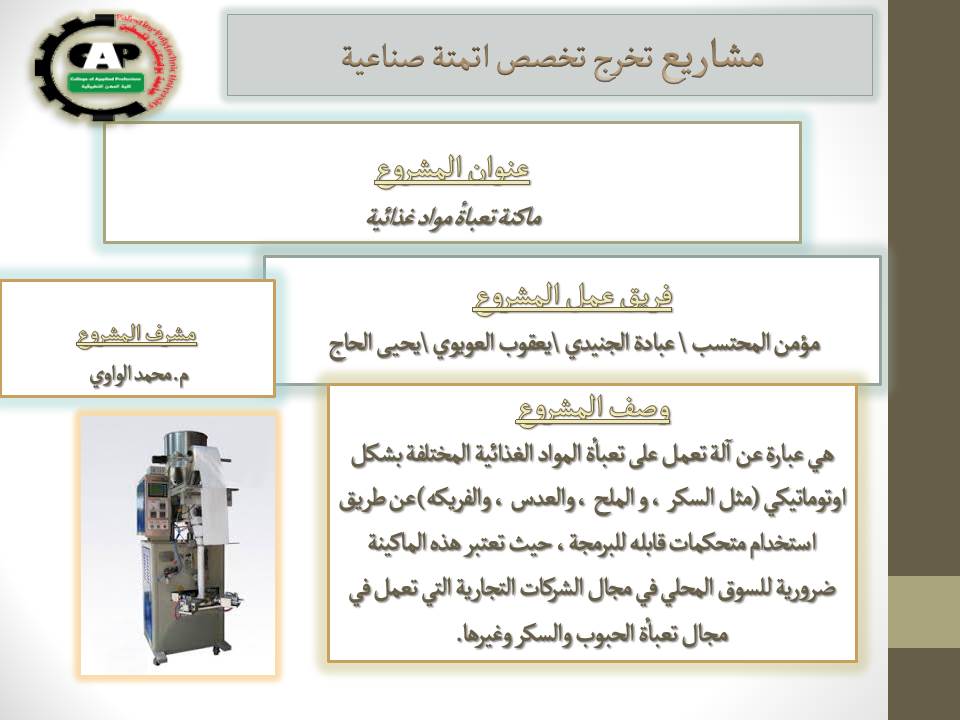 مشروع تخرج تخصص اتمتة صناعية بعنوان(ماكنة تعبئة مواد غذائية )