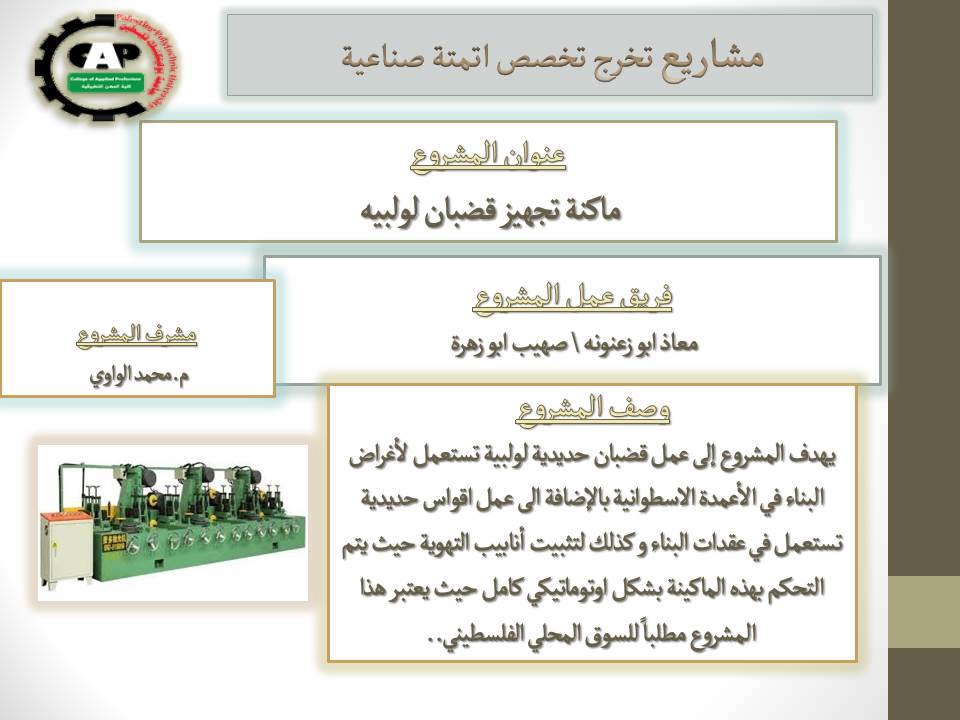 مشروع تخرج تخصص اتمتة صناعية (ماكنة تجهيز قضبان )