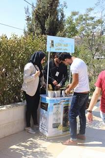 قامت مجموعة من طلبة التسويق والمبيعات بالترويج لمنتج السلطان في ساحة مبنى كلية المهن التطبيقية