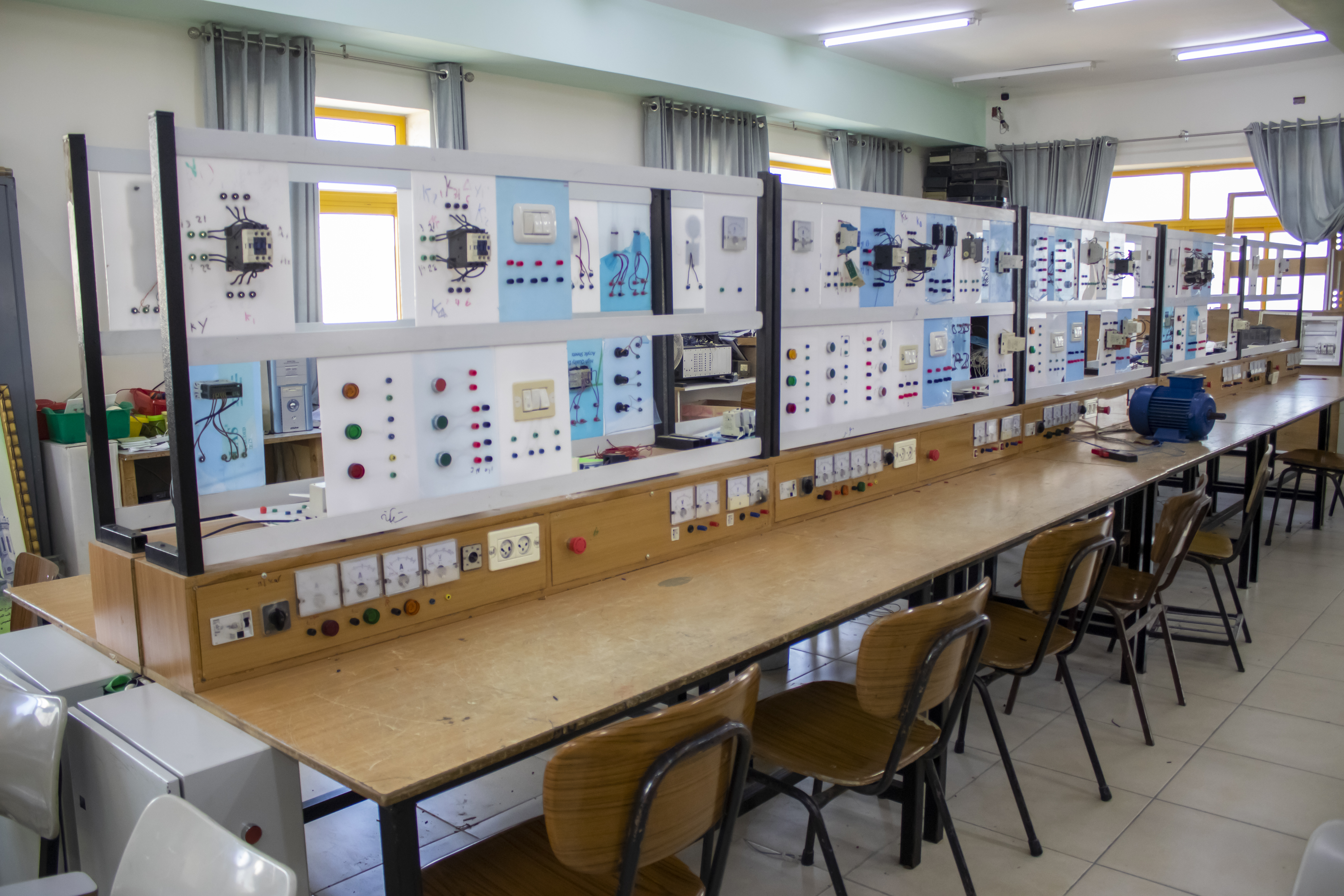 يهدف هذا المشغل الى التعرف على مصادر الجهد والية التعامل معها و التعامل مع العدد المختلفة وتوصيل الدوائر الكهربائية حسب المخطط وتتبع عملها وتصميم دوائر التحكم وتوصيلها حسب المواصفات و التعرف على المحركات وكيفية تشغيلها و تعلم كيفية تتبع الدوائر الكهربائية وصيانتها.