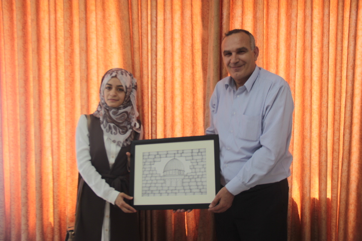 قدمت الطالبة تحرير عابدين لوحة فنيه من اعمالها في معرضها " ايقاع ريشتي" الذي عقد في مركز اسعاد الطفوله الى ادارة الكلية ممثله بعميدها الدكتور اسحق سدر تقدير لاهتمامهم ومتابعتهم للطلبة الخريجين