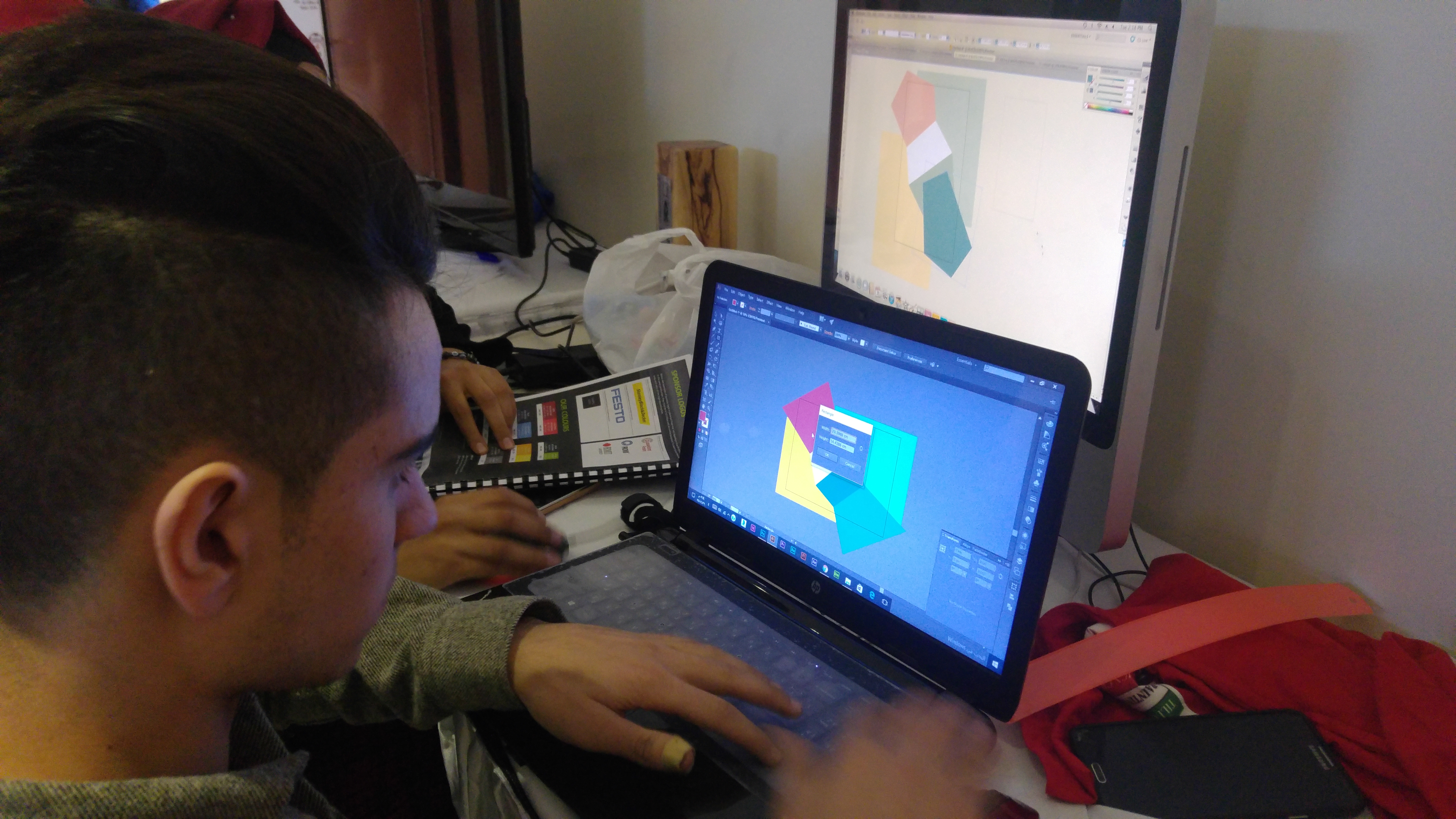 كما ويشارك الطالب ابراهيم القواسمة وضمن رعاية الاتحاد في تصاميم حيه خلال معرض الاكسبوتك .
