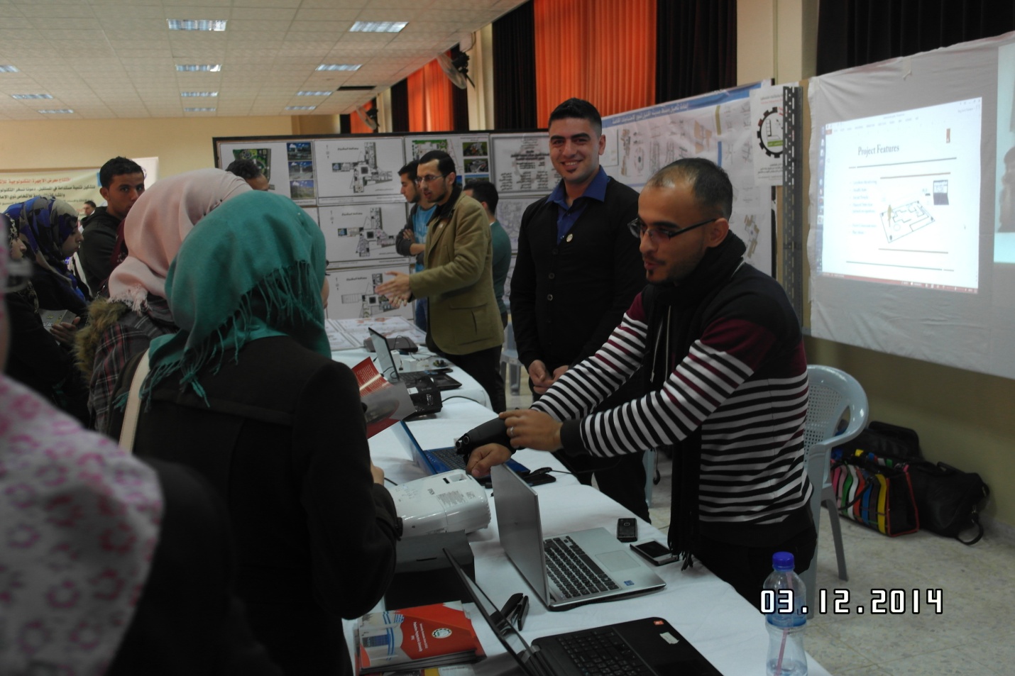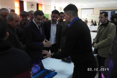 ومجموعة من مساعدي البحث والتدريس والطلبة من الكليات الاخرى في الجامعة وكمشاركة في احياء اليوم العالمي للأشخاص ذوي الاعاقة ليوم المعاق العلمي في معرض الاجهزة التكنولوجية للأشخاص ذوي الاعاقة الذي تنظمه دائرة الاغاثة والخدمات الاجتماعية في وكالة الغوث الدولية، وبالشراكة مع لجنة التنسيق للجان المحلية في مخيمات الضفة الغربية، وذلك يوم الاربعاء الموافق (3\12\2014 في مبنى الكلية الجامعية للعلوم التربوية (دار المعلمين)، المصيون- رام الله.