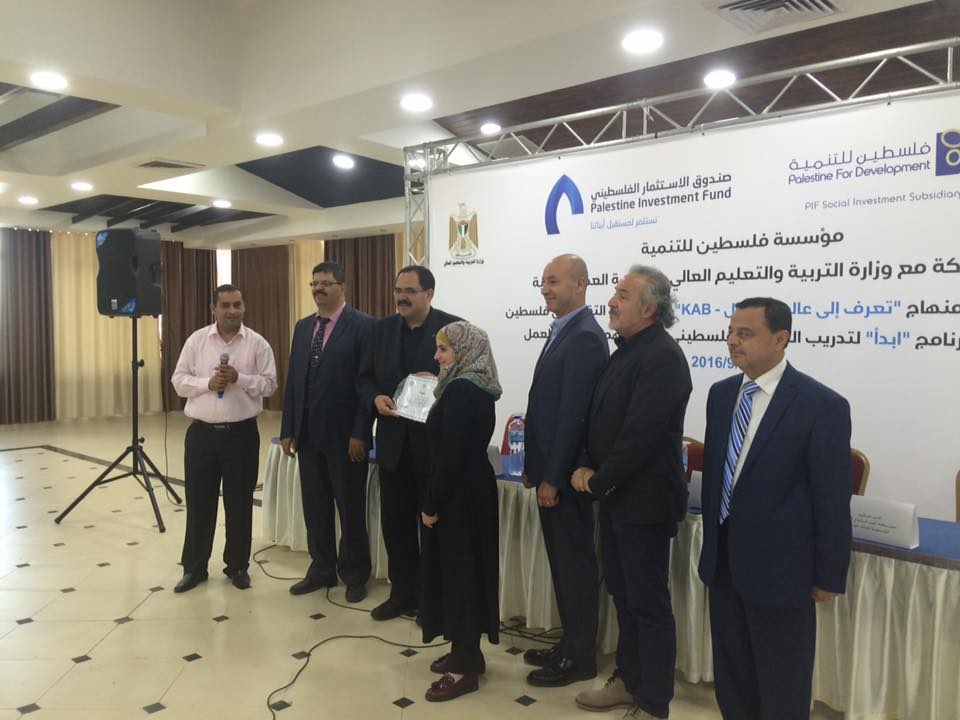 شارك مجموعة من موظفي وموظفات كلية المهن التطبيقية (أ.اكرم القاعود ،أ.اياد السويطي،أ.سميرة ابوغليون،أ.علية ابوزينه ، أ.سمية زاهدة) بالدورة التنشيطية لبرنامج تعرف الى عالم الاعمال KAB2016)) وجاء ذلك بعد اعلان وزارة التربية والتعليم العالي ومؤسسة فلسطين للتنمية، ذراع صندوق الاستثمار الفلسطيني في مجال المسؤولية الاجتماعية و بالتعاون مع منظمة العمل الدولية ILO، عن اعتماد منهاج "تعرف إلى عالم الأعمال" والمعروف ب KAB Know About Business”" لصالح 20 كلية تقنية في فلسطين، وذلك كجزء من برنامج "ابدأ".