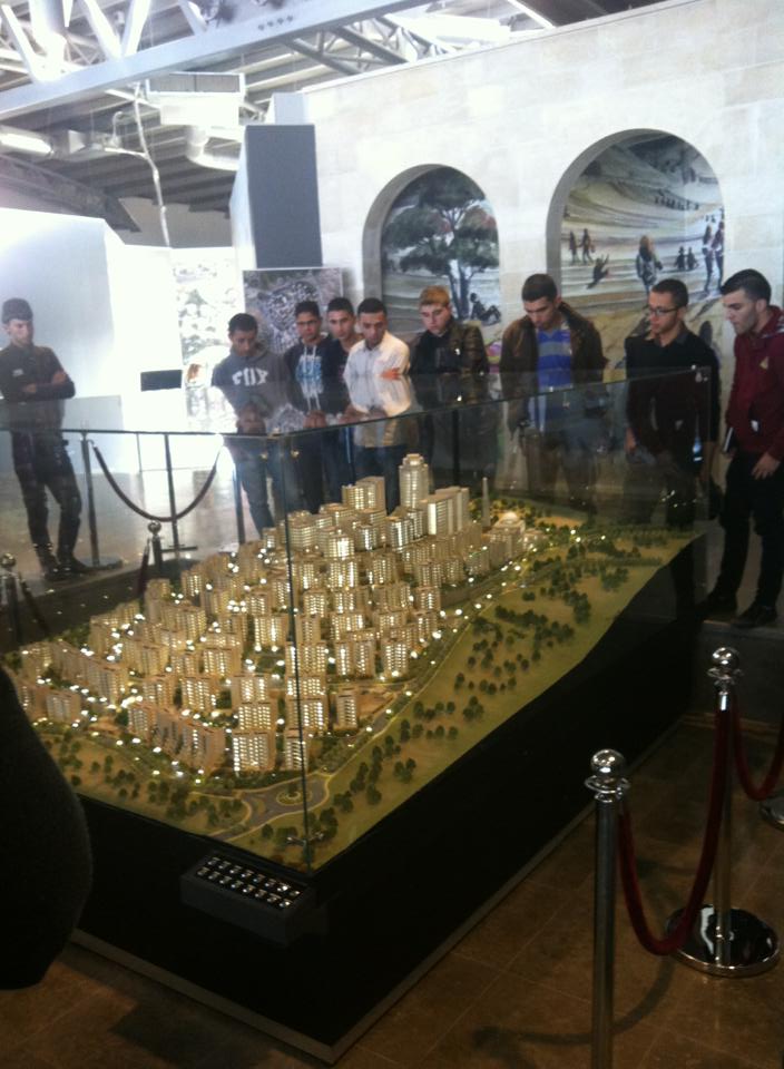 ثم تم التوجه لمدينه روابي حيث كان في استقبالنا مسؤوله العلاقات العامة هناك اسماء سلامه و المهندسون المسؤولون عن المشروع هناك قدموا لنا شرح مفصل عن المدينة من خلال القيام بجوله بداخلها ثم استضافونا في قاعه العرض حيث تم عرض فيلم ثلاثي الابعاد عن تخطيط المدينة، بعد ذلك قام الطلاب بجوله في غرفه العرض شاهدوا من خلالها المجسمات المختلفة للمدينة.