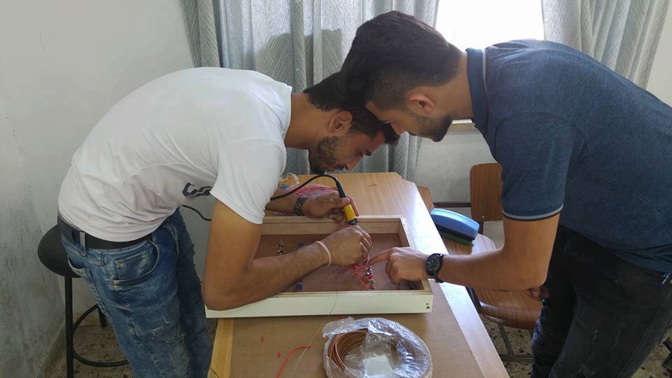 08 تشرين الأول 2017 طلاب الانظمة الذكية فصل 3 اثناء القيام بتركيب النماذج التدريبية المخصص لبرمجة LOGO PLC، حيث ستضاف هذه النماذج الى مختبر BMS . حتى يتم استخدامها في برمجة الانظمة الذكية.