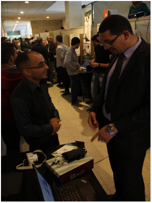 شاركت جامعة بوليتكنك فلسطين/ كلية المهن التطبيقية في المؤتمر والمعرض الوطني الرابع للتدريب والتعليم المهني والتقني في كلية هشام حجاوي التكنولوجية، ممثلة برئيس دائرة العلوم الإدارية أ.سميرة ابوغليون، وأ.دعاء الشرباتي وأ. طارق العجلوني ومجموعة من الطلبة المشاركين وهم (احمدعبدالحليم محمدحجة مشروع الكف لذكي للمكفوفين، حمزة حمدي محمد محتسب مشروع تعليم الكتروني، نايف ربيع نايف حموري-مشروع موقع الكتروني للمصورين، انس عبدالحفيظ عبدالله سلطان،عبدالله ناصرالدين، مهندالقواسمة –روبوت الدهـان الآلي، إسلام ناصريونس عاشور، وبكر أبو اسنينة، و حسام حروب، و رأفت الجنيدي-فيلم ثنائي الأبعاد عن فيديوكليب لقصيدة ، أحمد محمد سفيان محمد يوسف الطباخي، ويوسف ناصرالدين – فيلم ثلاثي الأبعاد، نوريحيى عبدالعظيم دوفش،محمود مرقة، ويوسف اعقيفان - فيلم وثائقي عن رسم متحف وجدارية الاسرى الذي اقيم في جامعةالقدس، وجدان الحموري بيت لحم السلام –فيلم وثائقي).
