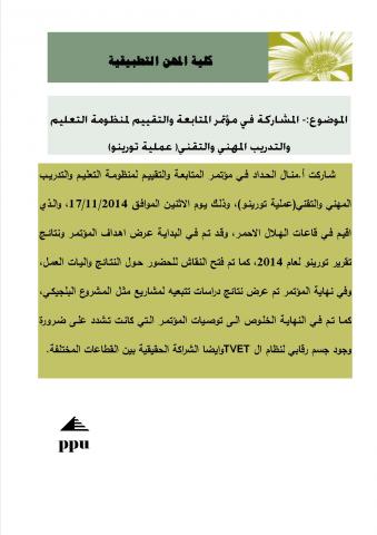 مشاركة المدرسة منال الحداد في مؤتمر المتابعة والتقييم لمنظومة التعليم والتدريب المهني والتقني(عملية تورينو)