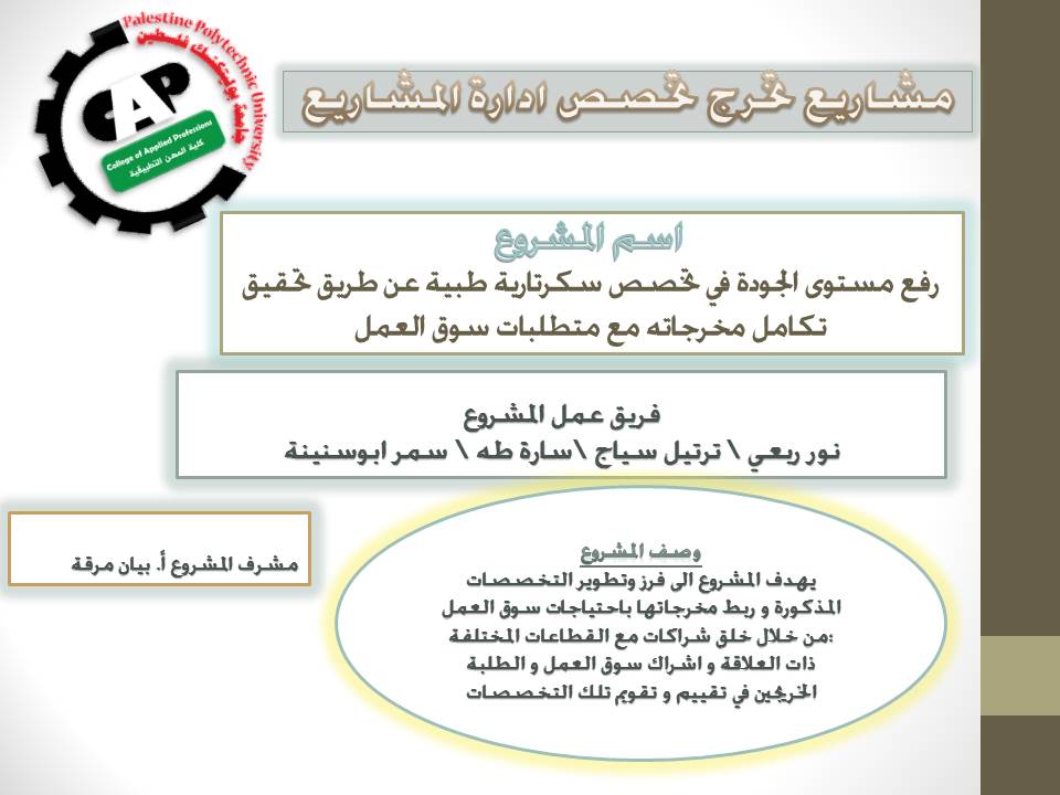 مشروع تخرج تخصص ادارة المشاريع (تطوير تخصص سكرتارية طبية )