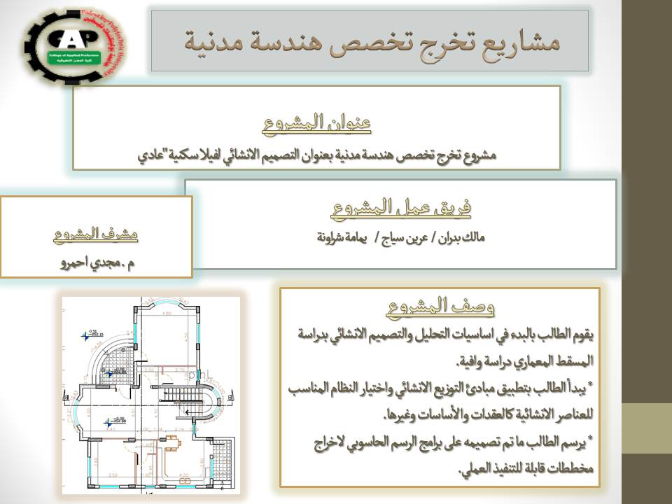 مشروع تخرج تخصص هندسة مدنية