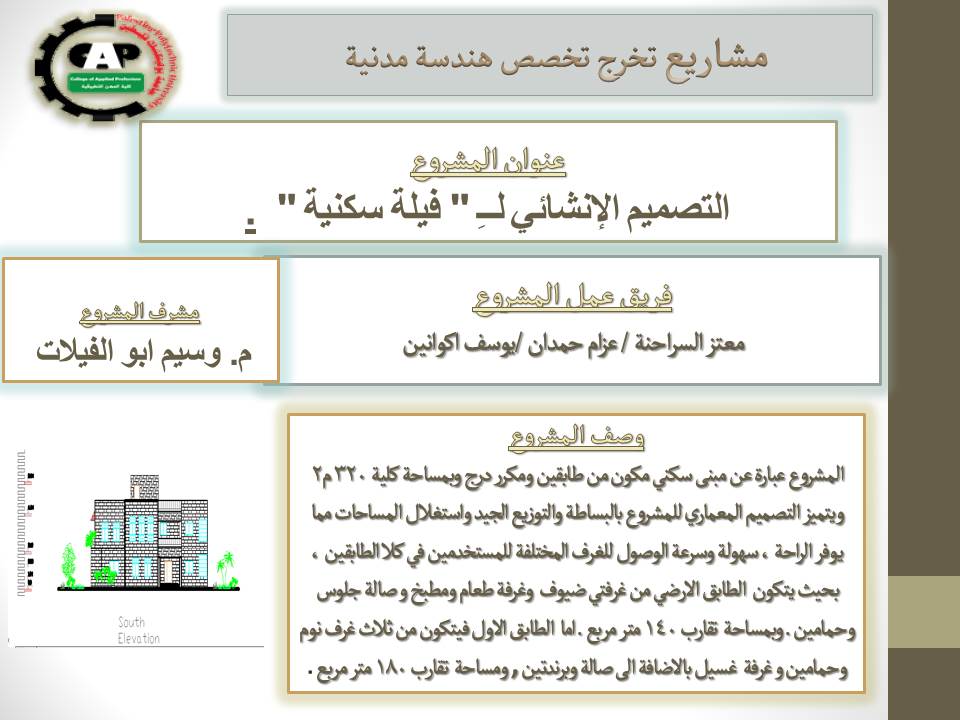 مشروع تخرج تخصص هندسة مدنية (التصميم الانشائي لفيلة سكنية المشروع الثالث )