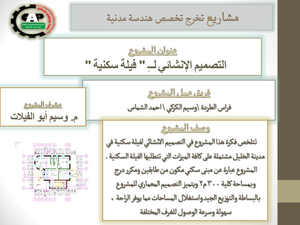 مشروع تخرج تخصص هندسة مدنية (التصميم الانشائي ل فيلة سكنية )