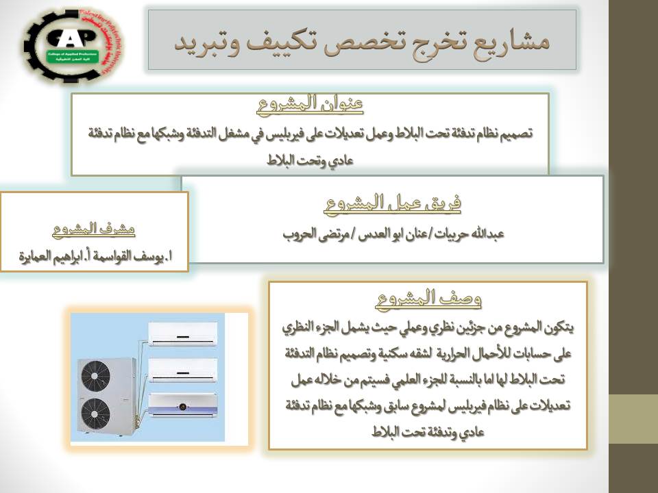 مشروع تخصص (تكييف وتبريد ) بعنوان نظام تدفئة تحت البلاط